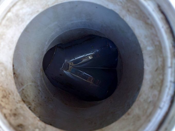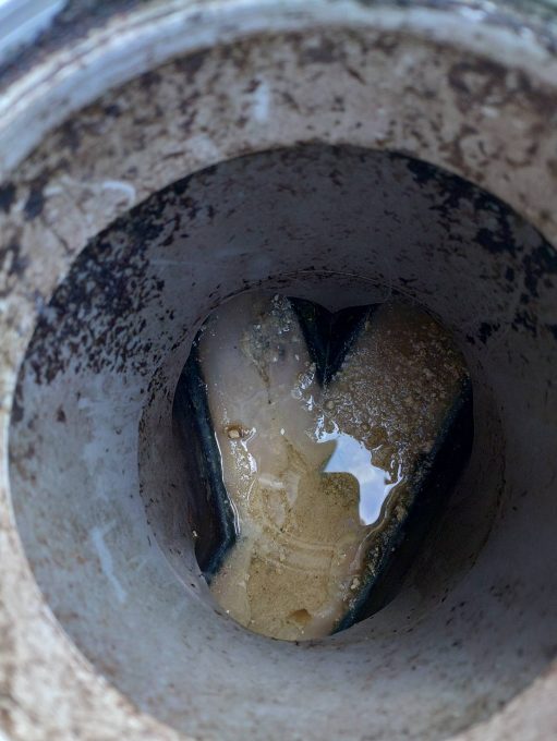 外の排水桝を確認すると油汚れがひどくこちらが原因で水が流れにくくなっています。