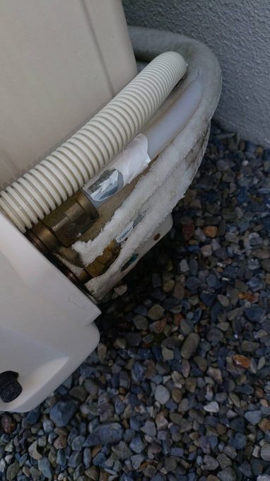 給湯器に繋がっているヒートポンプ配管に小さな亀裂が入っており、その部分から水が漏れてしまっている状態でした。