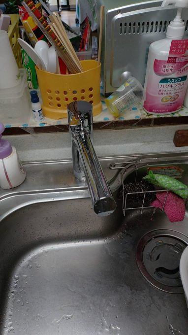 少し前から水がポタポタと漏れていたが、レバーハンドルを調節して水漏れを防いでいたとの事です。